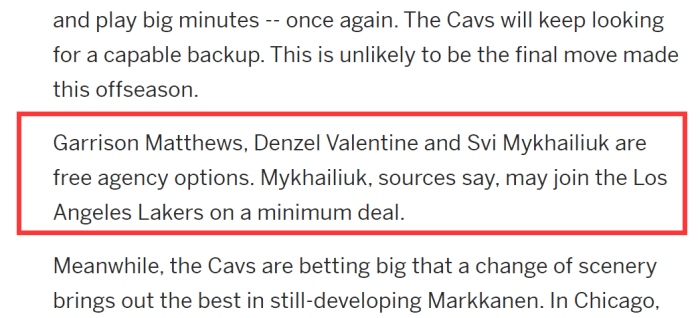 来源:JRS直播网08-28 11:37JRS直播网8月28日讯 ,据骑士队记者Chris Fedor表示,克利夫兰正在寻求侧翼方面的补强。在过去几周,骑士都提到了米哈伊柳克的名字。在本月5日,据名记Michael Scotto报道,雷霆撤回了对米哈伊柳克的资质报价,这让米哈伊柳克成为一名完全自由球员。据Fedor最新报道,消息人士透露,米哈伊柳克可能会和湖人签下一份底薪合同。