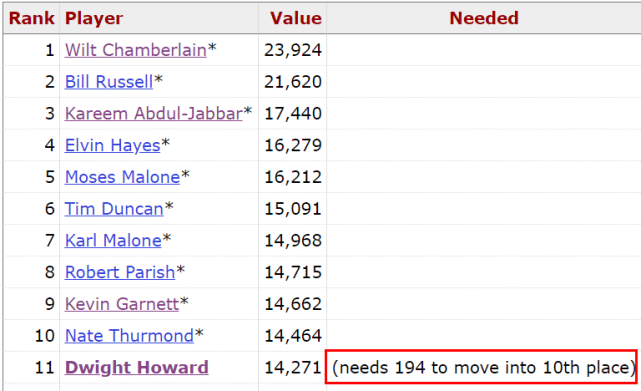 其一,他的生涯总篮板数有望进入历史前十。目前,霍华德已经抢下14271个篮板,在历史上排名第11位,他只需要再抢194个篮板,就能超越瑟蒙德,升至第十。上赛季,霍华德场均能抢到8.4个篮板,对他来说,完成这项里程碑并不难。
