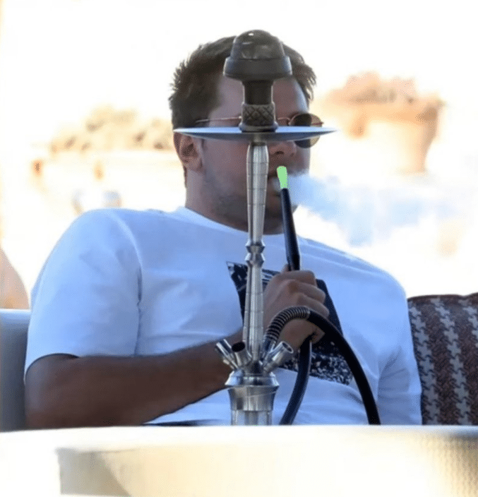 热议!22岁东契奇抽水烟获新绰号,吞云吐雾尽享假期:女友坐他身旁