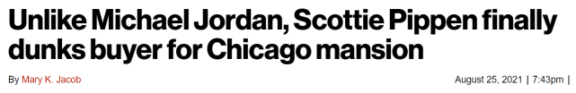 200万美元!皮蓬亏本卖出芝加哥房产,乔丹豪宅半价仍无人问津
