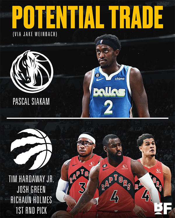 对于西卡的潜在交易,美媒列出一笔1换4的交易方案,独行侠送出小哈达威、约什-格林、霍姆斯和1个首轮签,从猛龙得到西亚卡姆。
