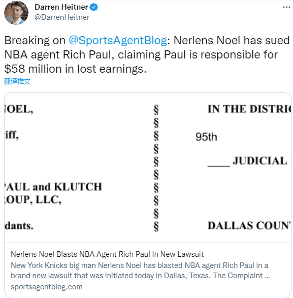 詹皇好友摊上事了!诺埃尔正式起诉富保罗:他该为5800万损失负责