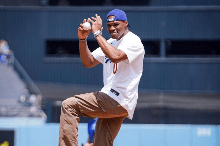 今天是MLB洛杉矶道奇队举办的“湖人日”活动。19-20赛季,道奇和湖人同时夺冠,两大冠军奖杯一起现身“湖人日”,非常抢眼。威少作为嘉宾,身穿道奇队0号球衣现身,并完成开球仪式,威少出生在洛杉矶,为道奇开球,也算是圆梦。此外,隆多也出现在场边,根据记者赛格尔透露,灰熊阵容中目前没有隆多的位置,如果在新赛季开始前隆多被灰熊买断,那么76人、热火、勇士、湖人都愿意为隆多提供一份底薪合同。