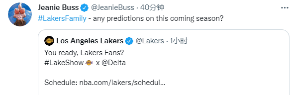 湖人美女老板呼吁球迷保存湖人新赛季的赛程,詹姆斯第一时间回应:保存好了(两个爱心表情)