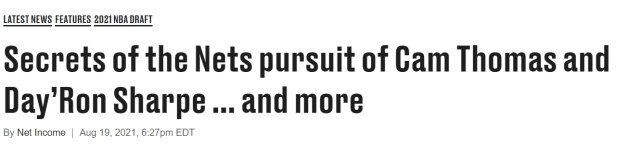 来源:JRS直播网08-20 11:11JRS直播网讯 拉斯维加斯夏季联赛上,篮网的两位首轮秀表现出色。27号秀卡姆-托马斯成为MVP和得分王,29号秀夏普在前场篮板方面相当突出。北京时间8月20日,美媒揭秘篮网的选秀内幕,看看他们是如何选中这两位首轮秀的。