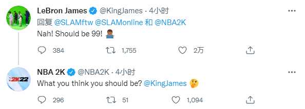 对于NBA 2K最新能力值,湖人巨星詹姆斯有话要说,公开为杜兰特和库里鸣不平,直言他们的能力值都该是99;换句话说,詹姆斯认为杜兰特和库里能力值96被低估了;2K官方回应:你觉得你的能力值应该是多少呢?