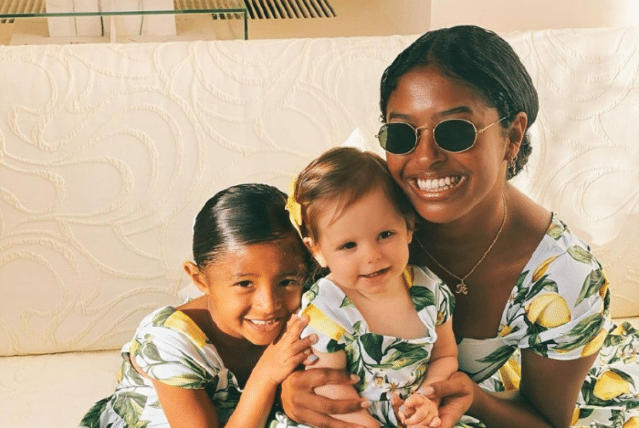 娜塔莉亚戴着墨镜,看起来非常有型。娜塔莉亚的妹妹比安卡已经快5岁了,而加索尔和猫妹的女儿还很小,三人一起合照,娜塔莉亚将加索尔夫妇的女儿抱在怀里,当作是自己的妹妹一样。瓦妮莎一家和加索尔一家的关系非常好,他们的关系就如同家人一样。