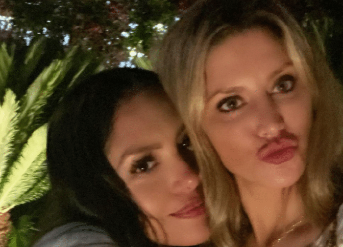 39岁瓦妮莎神仙颜值,侧颜实在太美了!趴在闺蜜肩膀上,大女儿身材挺拔