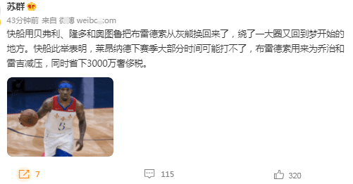 显而易见,快船送走贝弗利和朗多的目标是明确的,苏老师还提及了一个观点:快船此举表明,伦纳德下赛季大部分时间可能大不了。什么意思?苏群老师的意思就是伦纳德可能伤停大半个赛季,快船已经不指望伦纳德可以在下赛季为球队带来冲冠的盼头,转为保守的快船,节约奢侈税以及为乔治减压就成为了快船明确的目标。