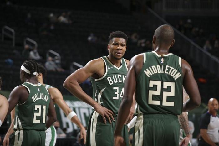 上赛季的总冠军,那么雄鹿三巨头自然有一席之地!字母哥又进步了,在季后赛中多次命中中远投,而且在罚球被各种干扰时不为所动,带队两次完成0-2落后的逆转!米德尔顿就是不太稳定,但得分爆发力极强,单节20+是常有的事,霍勒迪则攻防一体,雄鹿得到他后实力提升一个档次!