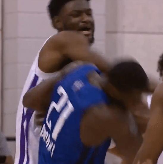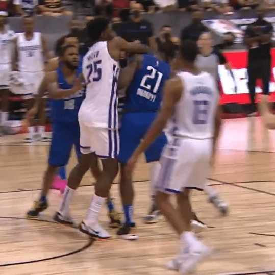 来源:JRS直播网08-16 15:59JRS直播网讯 北京时间8月16日,NBA夏季联赛比赛中发生冲突,在国王和独行侠比赛中,独行侠新秀二级恶意犯规被驱逐,国王悍将梅图瞬间暴怒,肘击对手的头部吃到技犯并且也没驱逐离场。