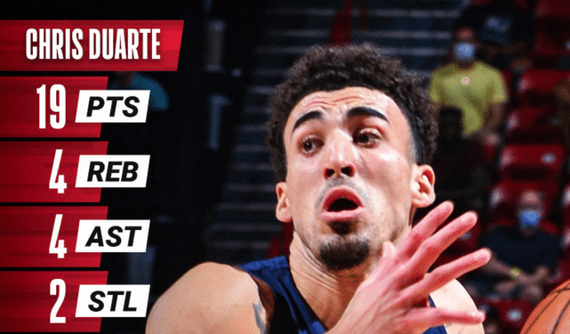 这名新秀有出色的投篮能力,球场视野也不错,多次送出精彩的妙传。与此同时,杜阿尔特防守意识出众,尤其协防能力出色,往往能送出漂亮的抢断和盖帽。虽然夏季联赛的强度和NBA常规赛还是有很大的差距,但从他的比赛风格来看,杜阿尔特适应真正的NBA舞台应该并不难,让我们拭目以待!