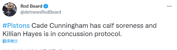 来源:JRS直播网08-15 15:01JRS直播网讯北京时间8月15日,NBA夏季联赛继续进行,活塞对阵湖人,不过状元坎宁安轮休不打,赛前没有穿球衣,也没有热身,而是坐在场边观战;名记Rob Beard透露坎宁安轮休理由是小腿酸痛,活塞2002年7号秀海斯接受脑震荡治疗也缺席比赛。