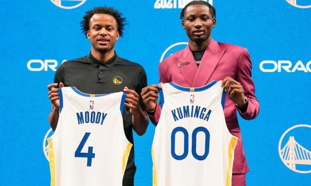 选秀方面,勇士也有很大收获。他们得到的库明加和穆迪,都有能力成为球队的即战力。库明加身体素质劲爆,有潜力成为一个全面的球员,在今天的比赛中,一记晃过对手逇滑翔劈扣令人印象深刻,而穆迪的三分球表现不错,夏季联赛(加州+拉斯维加斯)至今22投10中。