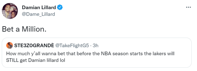 粉碎加盟湖人流言!利拉德霸气回应球迷提问:赌100万吧