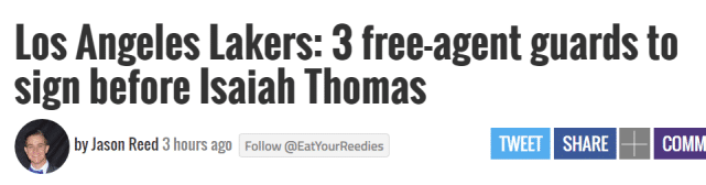 除了布拉德利,Lakeshowlife还列出两位比小托马斯更值得签的后卫。一位是老将JJ-雷迪克,另一位是湖人旧将米哈伊柳克。