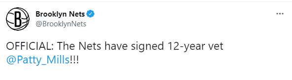 篮网官宣签约米尔斯,晒拥抱杜兰特合影:2年1200万助三巨头冲冠