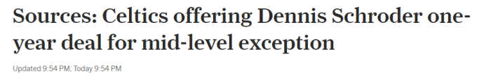 来源:JRS直播网08-10 14:54JRS直播网讯 北京时间8月10日,据凯尔特人记者Brian Robb报道,绿军给施罗德提供了一份为期一年的中产合同,正在等待施罗德的回复;目前凯尔特人拥有950万美元的全额中产特例和590万美元迷你中产特例;换句话说,凯尔特人最多给施罗德一年950万美元报价。