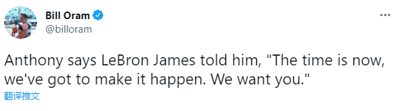来源:JRS直播网08-10 11:01JRS直播网讯 北京时间8月10日,名记Bill oram报道,安东尼自曝詹姆斯亲自招募他加盟湖人,安东尼透露詹姆斯告诉他:现在是时候了,我们必须让它发生,我们需要你;这是詹姆斯招募甜瓜的原话;甜瓜还透露冲冠一直激励着自己,没有总冠军让自己夜不能寐。