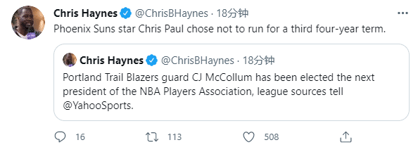 官宣!麦科勒姆正式当选NBA新工会主席,球员投票通过+保罗放弃竞选