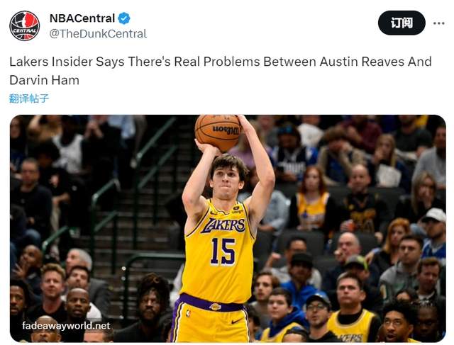 据记者的报道,自己听说哈姆和里夫斯之间有矛盾,虽然没有很严重,但可能已经到需要经纪人和管理层介入的地步。虽然里夫斯目前是年度最佳第六人的热门人选,他可以做得更多。在上赛季帮助湖人打进西部决赛后,里夫斯被认为是湖人在詹姆斯和浓眉之外的最佳人选,他目前为止表现稳定,场均15.1分,5.0次助攻和4.6个篮板。