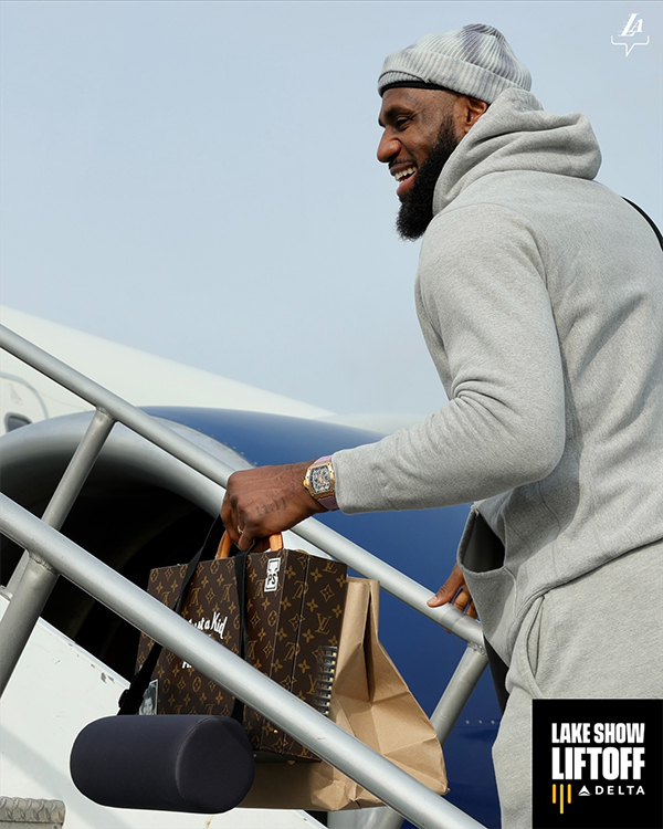 詹姆斯身穿一套灰色运动装,戴着名表、提着保温杯登上飞机,登机时满脸笑容十分开心;上一场湖人主场轻松击败黄蜂,詹姆斯三节打卡下班,仅仅出战24分钟就拿到17分11助攻的两双数据。