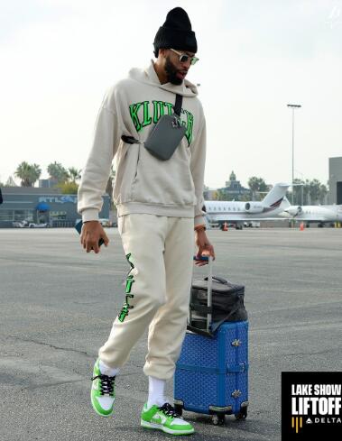 浓眉也是身穿运动套装,戴着黑色针织帽和墨镜,拿着手机、拉着行李箱,一脸严肃的表情;湖人客场挑战森林狼,预计浓眉将继续带伤出战,挑战唐斯和戈贝尔两大内线。