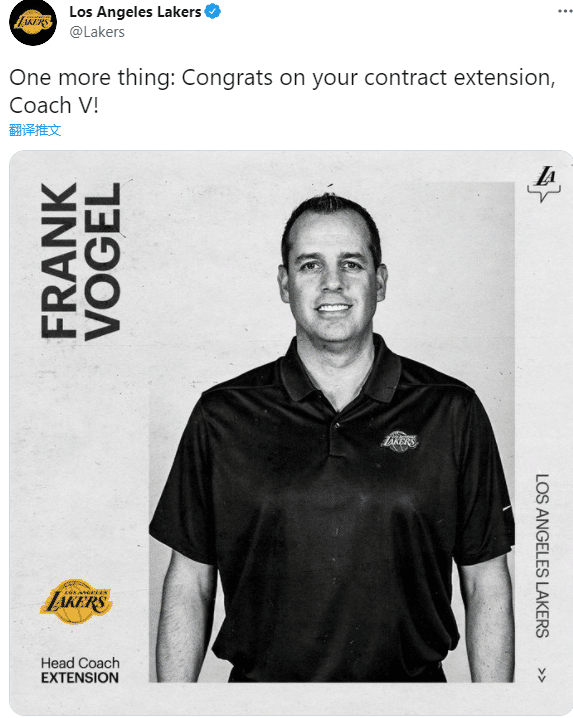 湖人正式续约主教练沃格尔,不过沃帅的合同细节并未公布。