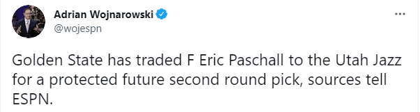 来源:JRS直播网08-05 09:54JRS直播网讯 北京时间8月5日,勇士又完成一笔交易,据espn名记沃纳罗斯基报道,勇士已经把帕斯卡尔交易到犹他爵士,换来一个受保护的二轮选秀权,来自灰熊2026年前42名受保护的二轮签。