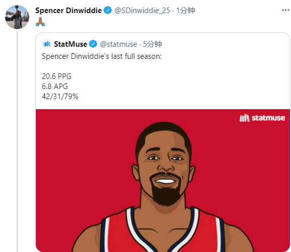 如今丁威迪正式离开篮网,虽然没有拿到5年1.25亿美元大合同,但他和奇才签下3年6200万美元肥约,平均年薪2000多万美元,发推晒出加盟奇才的表情反应。。
