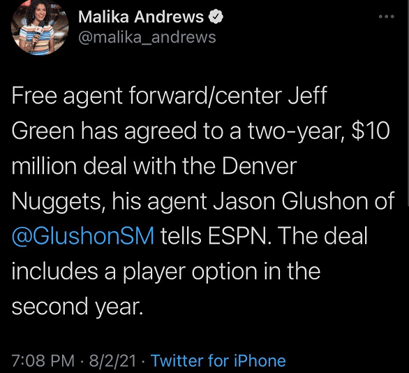 自家球员离队,杰夫格林去掘金了,两年1000万,第二年球员选项。上个赛季杰夫格林对于球队的重要性,所有人都是有目共睹的,但是很可惜,他将会离开球队,去到了西部的掘金。