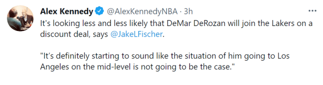 如果热火成功引进德罗赞和洛瑞,他们的整体实力将明显提升,有望再次加入总冠军的竞争。那也意味着湖人签下德罗赞的美梦可能落空。此前,有记者报道称,德罗赞有可能降薪加盟湖人,但据B/R记者Jake Fischer的最新消息,虽然湖人管理层和球员都欢迎德罗赞加盟,再加上科比、家乡的元素,还有总冠军的吸引力,但德罗赞还是不大可能愿意接受一份中产合同。美媒报道称,德罗赞的年薪预测范围在2000万-2300万之间。