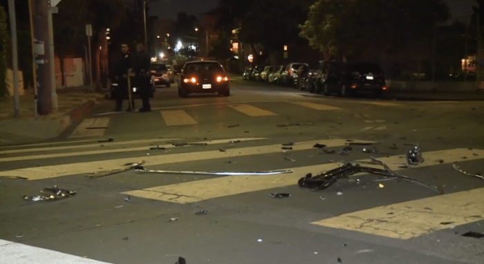 嫌疑犯还撞坏了一所高中的大门,铁门被撞飞,而库兹马的SUV已经被撞得不成样子,现场满地都是汽车碎片;该嫌疑犯被控告多项罪名。