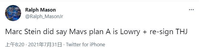 来源:JRS直播网07-31 11:10JRS直播网讯 北京时间7月31日,据《纽约时报》记者马克-斯坦报道,独行侠目前最大的引援计划曝光,那就是引进猛龙控卫洛瑞,同时和队内的小哈达威续约。