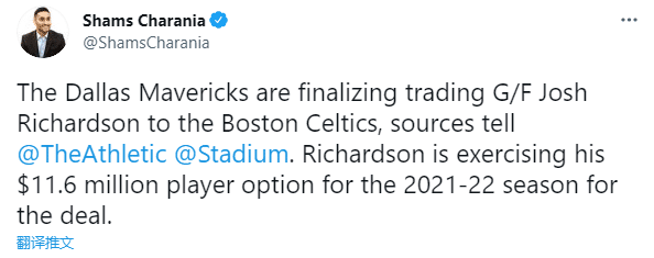 凯尔特人引援理查德森,他们使用交易海沃德产生的交易特例来吃掉理查德森的千万合同,之前凯尔特人和老鹰、国王达成一笔三方交易,送走特里斯坦-汤普森得到邓恩和费尔南多;绿军GM史蒂文斯上任后正在改变阵容,围绕塔图姆和杰伦-布朗打造新的阵容。