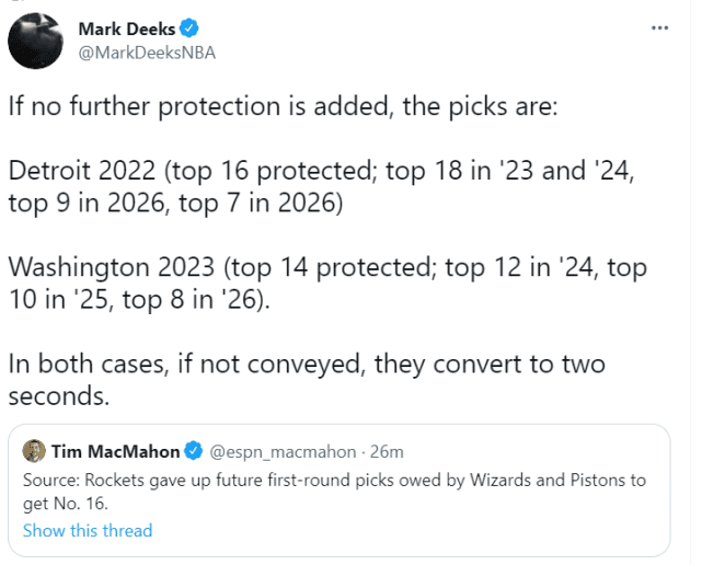 来源:JRS直播网07-30 19:51JRS直播网讯 北京时间7月30日,2021年选秀大会上,火箭用未来的两个受保护的首轮签(来自活塞和奇才),换来雷霆的首轮第16号签,并用16号签选中了土耳其超级联赛MVP阿尔佩伦-申京。NBA名记奥康纳感慨火箭这次选择大赚。