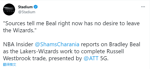 之前比尔陷入可能申请离队的流言之中,更有消息说若比尔申请离队,奇才将会交易威少;如今奇才正在积极交易威少,最大原因就是为比尔引援新帮手;最新消息,名记shams表示比尔现在不想离开奇才队,这意味着比尔继续留在奇才,而威少即将被交易。