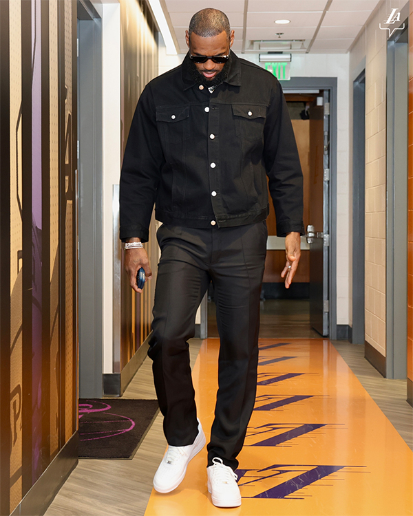 距离湖人与黄蜂比赛开打还有4个半小时,即将39岁的詹姆斯便早早入场,身穿黑色长裤、黑色夹克和白色板鞋走进湖人球馆,戴着墨镜十分霸气;来到更衣室中,詹姆斯脱掉外套,脖子上的几条大金链子十分显眼,还戴着名表以及镶钻戒指,凸显土豪范。