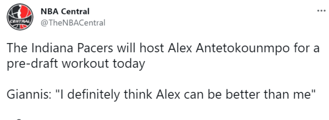 虽然字母哥强烈推荐五弟,但目前亚历克斯的选秀前景并不是那么被看好。知名选秀网站NBADraft没有将他列入预测选择范围,而多家网站认为亚历克斯可能在第二轮被选中,也有可能落选。