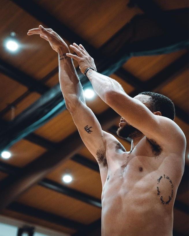 这是库里?摄影师晒单臂劈扣照,赤裸上身肌肉爆棚,球迷:篮筐多高?