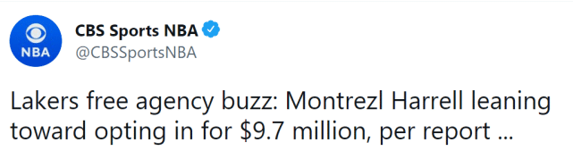美媒报道称,哈雷尔大概率执行970万美元的球员选项,下赛季继续留在湖人。新赛季,他能有更好的表现吗?