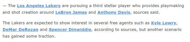 来源:JRS直播网07-26 10:29JRS直播网讯 北京时间7月26日,名记查拉尼亚和沃纳罗斯基都报道了湖人的最新运作。这支在本赛季首轮就被淘汰的劲旅,正试图在休赛期补强阵容,力争在2021-22赛季重夺总冠军。