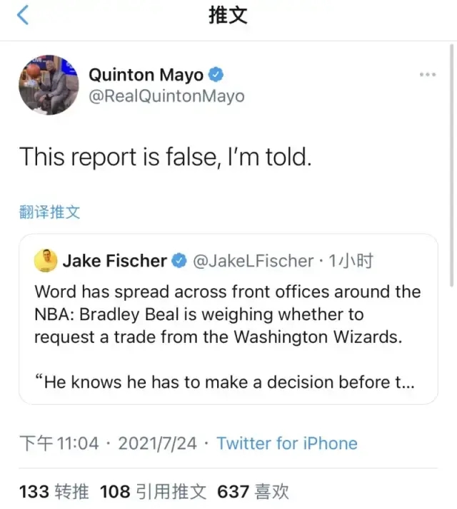 如果比尔的态度是置之不理和闭口不谈,纵容关于交易申请的新闻继续发酵,那或许奇才随队记者收到的消息才是假的,威少也可以提前收拾好行李了。