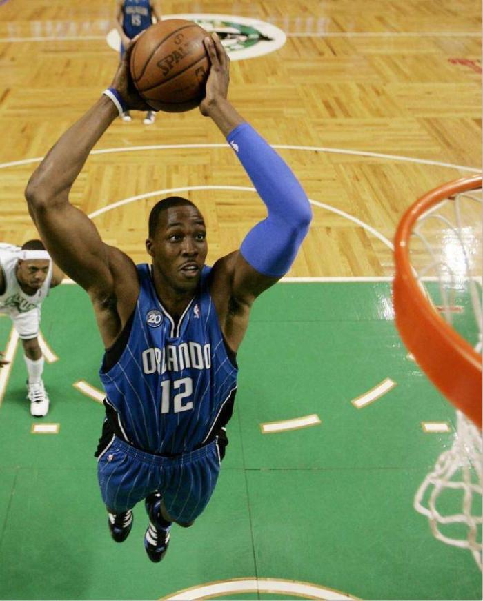 必须承认,巅峰期的霍华德还是挺强的,一人构建了魔术的防守体系,依靠着强大的上肢力量和变态的爆发力,尽管脚步不华丽在进攻端也是非常凶残的。只是他真正面对姚明、奥尼尔这样的中锋时打得不怎么样,而且巅峰期不够长,大致在效力火箭第二年就呈现下滑趋势了!