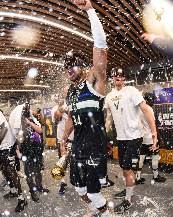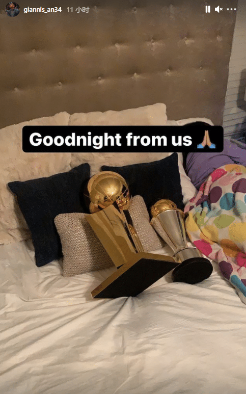 来源:JRS直播网07-22 19:23JRS直播网讯 密尔沃基雄鹿4-2击败太阳夺得总冠军之后,字母哥第一个把总冠军奖杯带回家,并且抱着奥布莱恩杯和FMVP奖杯睡觉;总决赛G6字母哥狂砍50分14篮板5盖帽,总决赛场均35+13全票当选FMVP。