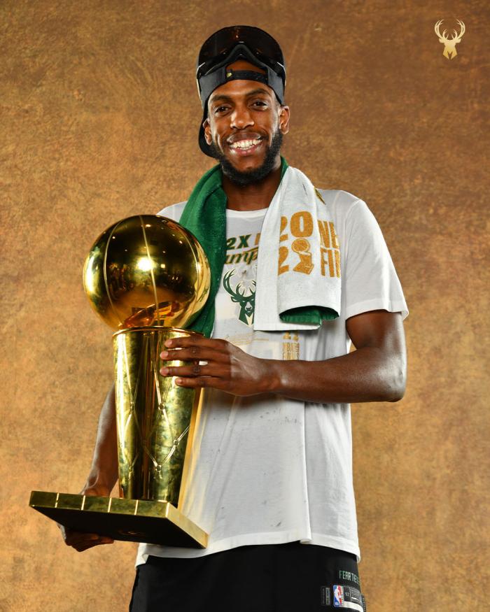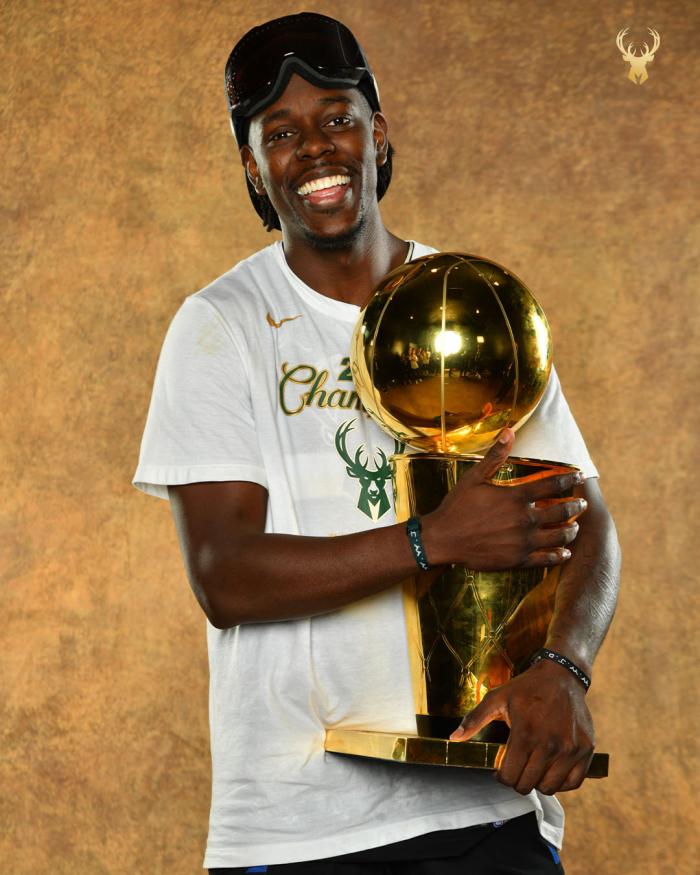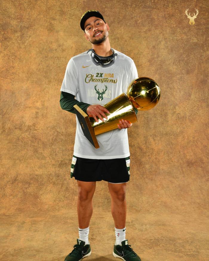 26岁字母哥身穿雄鹿34号球衣,抱着总冠军奥布莱恩杯和FMVP两座奖杯,戴着冠军帽,咧嘴大笑乐开怀;今年总决赛,字母哥场均轰下35+13的统治级表现,总决赛G6狂砍50分14篮板5盖帽,全票当选总决赛MVP。