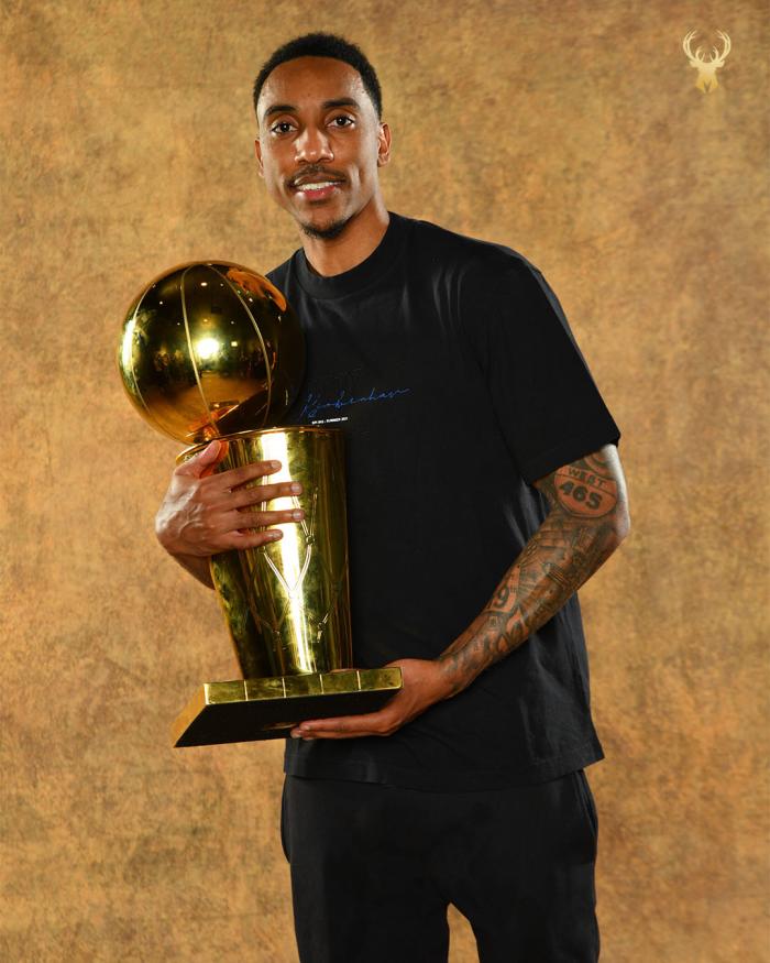来源:JRS直播网07-21 17:46JRS直播网讯 北京时间7月21日,雄鹿总决赛4-2淘汰太阳,正式夺得2021年NBA总冠军,时隔50年终于再次夺冠;狂欢庆祝之后,雄鹿官方晒出众将抱着总冠军奖杯的定妆照,塔克、大洛亲吻奖杯,众人抱着奖杯咧嘴大笑,仅仅只有字母哥一人抱双杯出镜。