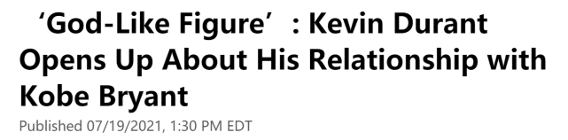 杜兰特再谈黑曼巴:科比就像神一般的人物,我被他彻底征服了