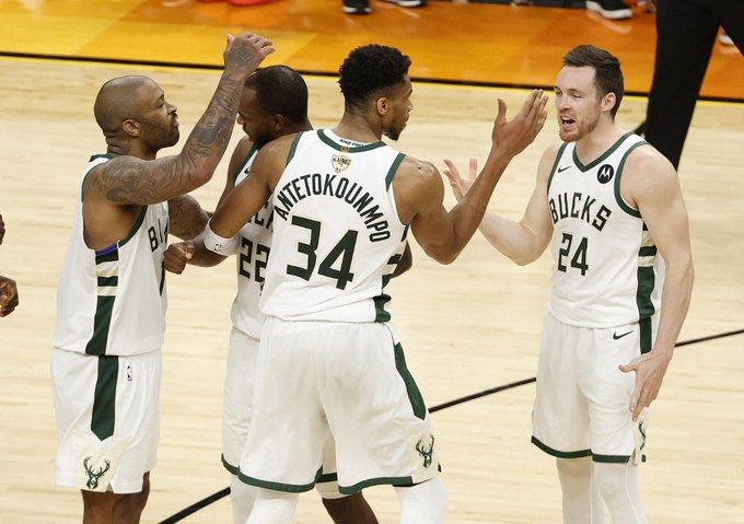 很明显,雄鹿队已经准备好了庆祝夺冠,相信他们已经准备好了庆祝夺冠的T恤,预计联盟总裁会把总冠军奖杯带到密尔沃基。
