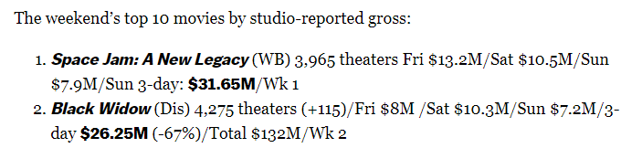 来源:JRS直播网07-19 17:51JRS直播网讯 北京时间7月19日,詹姆斯新电影《空中大灌篮:新传奇》首周票房出炉,首周总票房是3165万美元,夺得北美周末票房冠军,这一票房也超越了当年乔丹《空中大灌篮》首周末票房纪录。